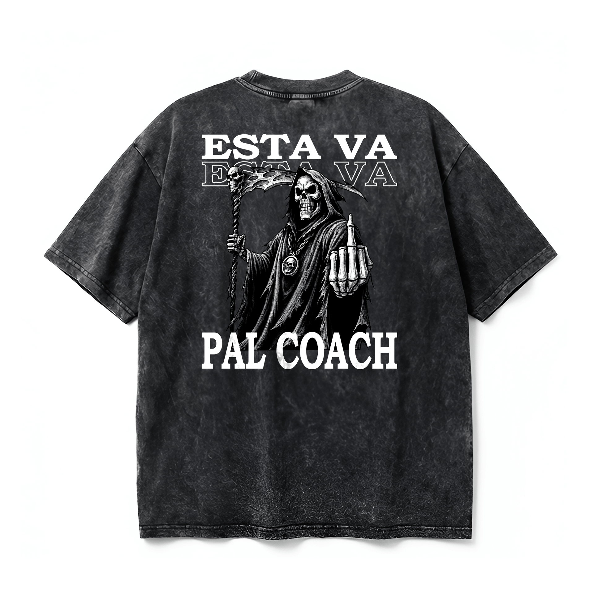 No es solo una camiseta, es tu armadura. La ANABOLIC SERIES fue creada para los que no van al gimnasio a "hacer ejercicio", sino a mutar. Con el diseño OVERSIZED ACID WASH | ESTA VA PAL COACH, llevas el humor del gymrat con la estética más pesada del mercado.